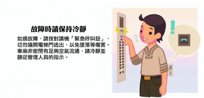 - 依序進出,須禮讓電梯裡的乘客出來後,才可進入。